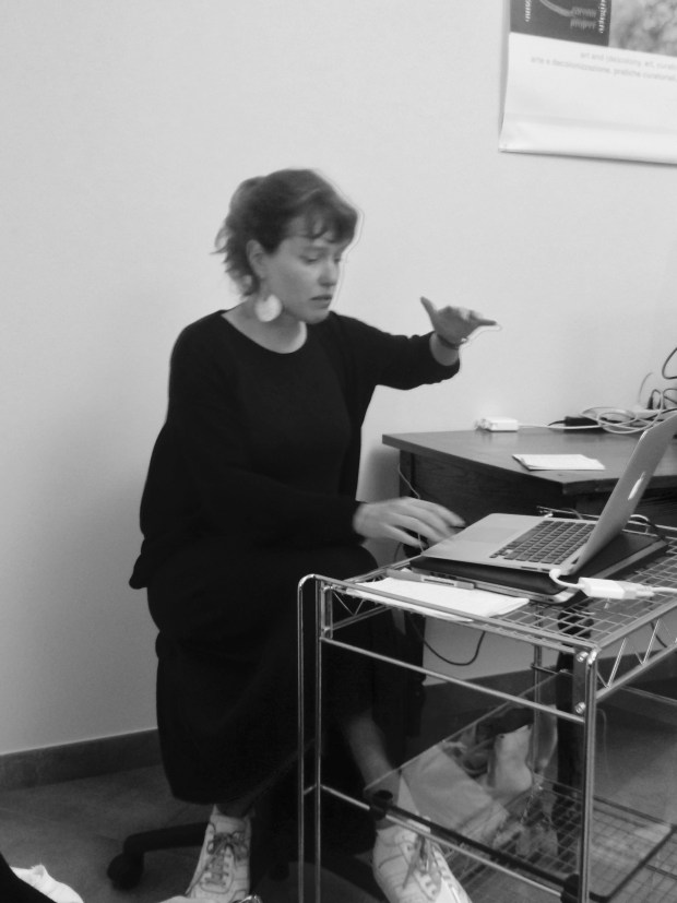 Images: Julia Ponzio( Universita’ di Bari) ; group at the forum; An Paenhuysen ( Art writer and critic, lecturer ); From left: Enrica Picsrelli, Celeste Ianniciello; Michaela Quadraro; artist Chandan Shafiql Kabir ( Bangladesh); Celeste Ianniciello ( Researcher, Universita L’Orientale); Roberta Trape'( Italy, AILAE Co- Director;The  University of Melbourne ); Enrica Picarelli ( Italy, researcher, post-doctorate University of Lisbon); Monica Sassatelli ( UK, Goldsmith University, Sociology Dept.) presenting her dialogue with artist Maria Rosa Jijon ( Ecuador); Emma Barrow ( RMIT University, Australia); Francesco Martone ( Italy Arts4Commons).